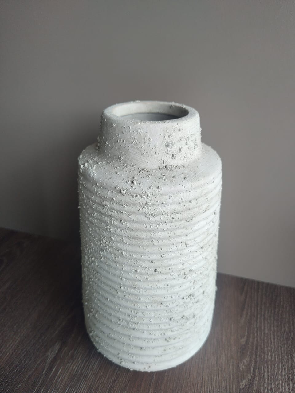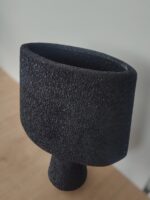 Florero decorativo de diseño moderno en color negro con textura rugosa y acabado mate. Ideal para dar un toque elegante a cualquier espacio.